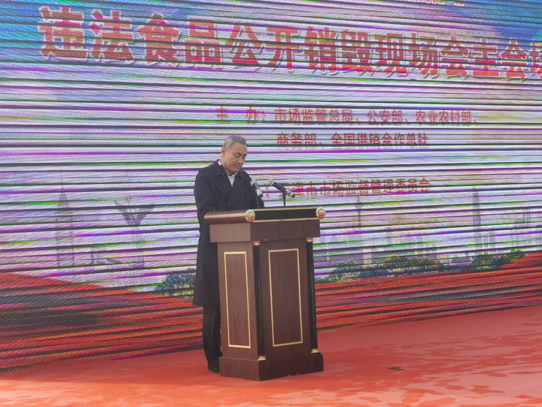 今日,由國(guó)家市場(chǎng)監(jiān)管總局、公安部、農(nóng)業(yè)農(nóng)村部、商務(wù)部、中華全國(guó)供銷合作總社五部門聯(lián)合主辦的“農(nóng)村假冒偽劣食品專項(xiàng)執(zhí)法行動(dòng)違法食品公開銷毀現(xiàn)場(chǎng)會(huì)”以視頻連線方式在北京召開,天津食品集團(tuán)作為唯一一家企業(yè)代表受邀參加天津主會(huì)場(chǎng)會(huì)議,集團(tuán)黨委副書記、總經(jīng)理趙國(guó)榮出席并代表集團(tuán)發(fā)言。